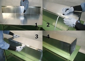 紙+アルミの特性を活かした次世代ダクト 厚さ8mmの段ボール表面に、厚さ20μmのアルミニウム箔をラミネートした高機能素材です。 環境に優しい 生産時に排出されるCO2を鋼板製ダクトの約1/4以下とし、平板状態で運べることから輸送時に関わるCO2排出量の削減も期待できます。 ダクト性能 不燃認定を取得。鋼板製ダクトと比較し重量は約1/5です。断熱効果により保温工事が条件によって不要です。 優れた意匠性と軽量素材による安全性向上 断熱材がない事によるすっきりとした外観は露出ダクトに最適です。 簡単な組立作業 組立手順は標準化されており、特別な道具を使わずに簡単に組み立て可能です。鋼板製に比べて軽量な為、取り扱いが容易です。 |